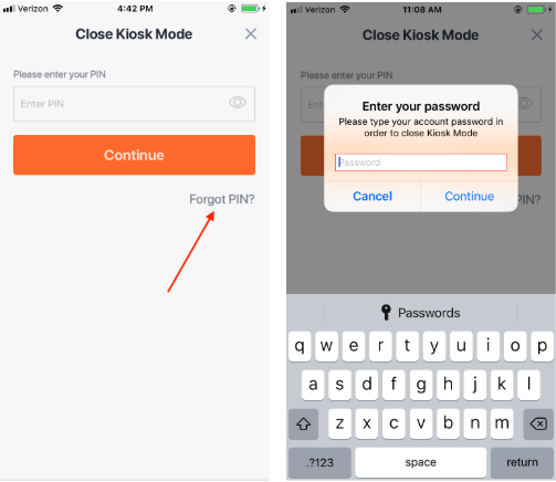 5. If you can’t remember the code to unlock the form on your screen, you can enter your Jotform account password to log out of kiosk mode.
