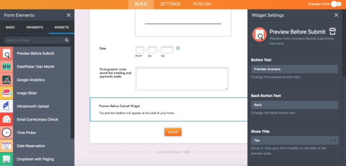 The handy Preview Before Submit widget allows people to fill out a form and review all of their information before sending it off.