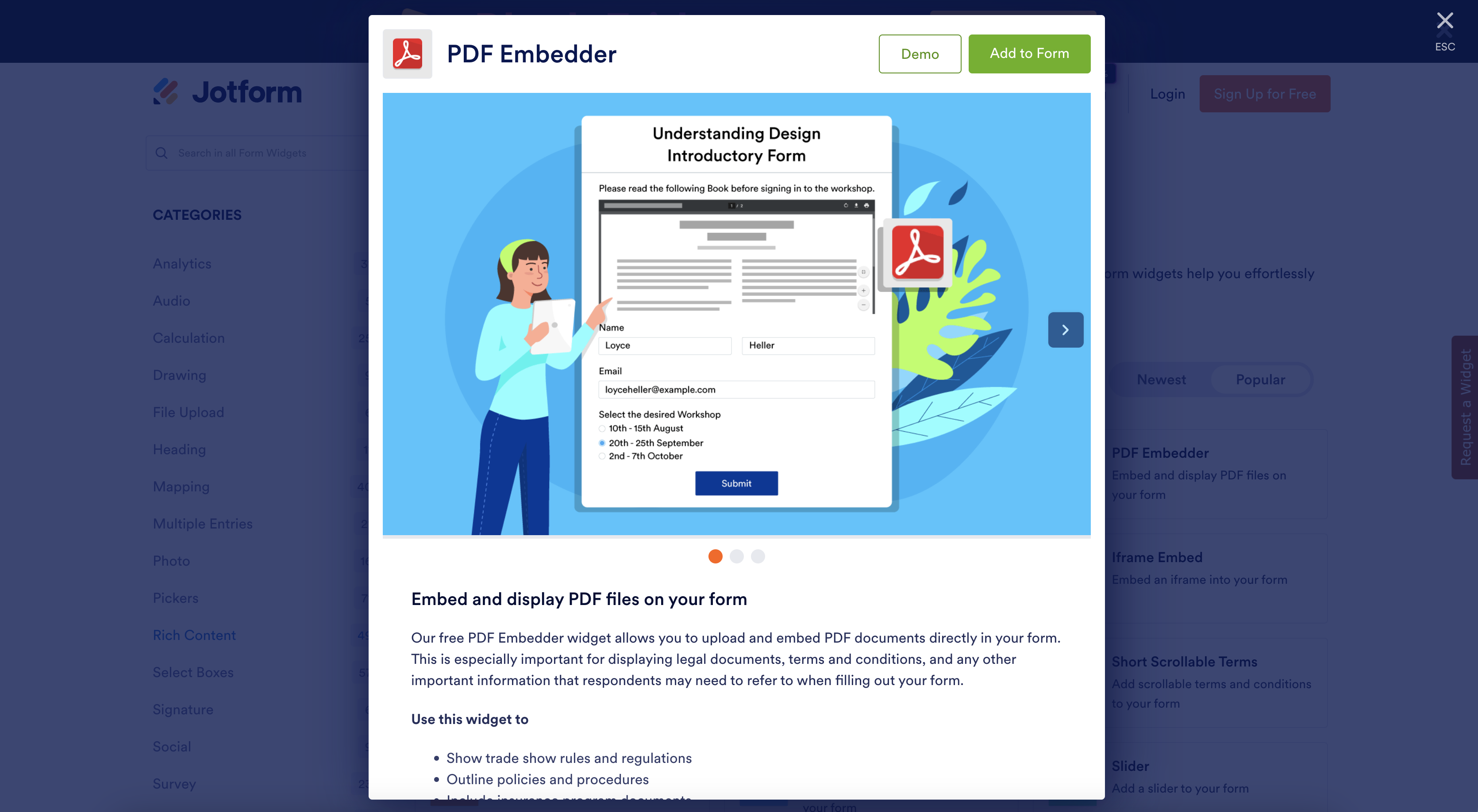 OK, so being able to embed PDFs into your forms may not meet your definition of wow-worthy. Still, if you’re a hiring manager, attorney, insurance agent, or compliance professional, you’ll appreciate how this widget enables you to easily insert your organization’s terms and conditions or other important disclosures.