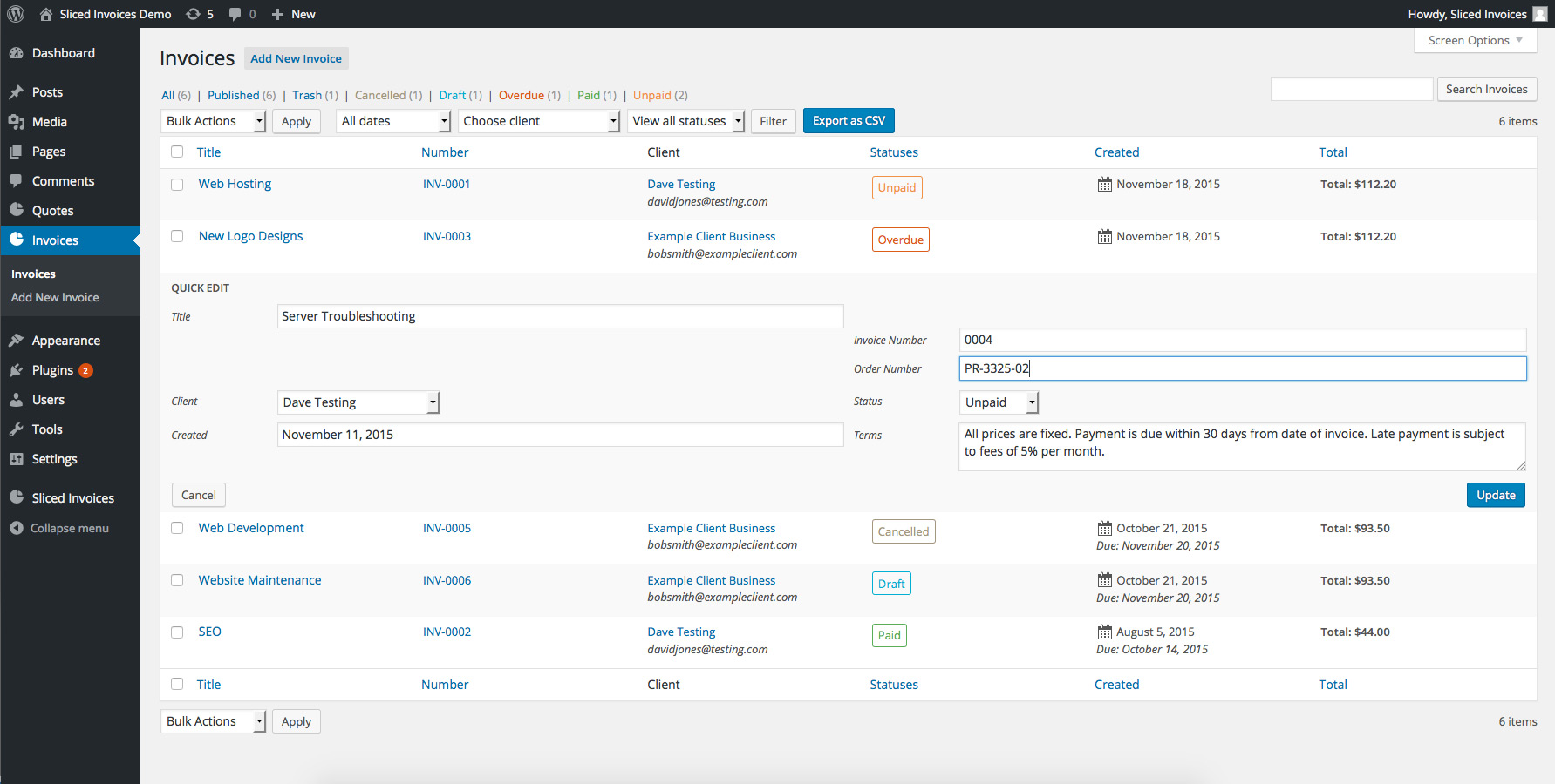If you have a WordPress website, you can make the process of invoicing easier by using a WordPress invoice plug-in. This online tool adds much-needed functionality to your website, making it possible to automate and streamline certain invoice activities.