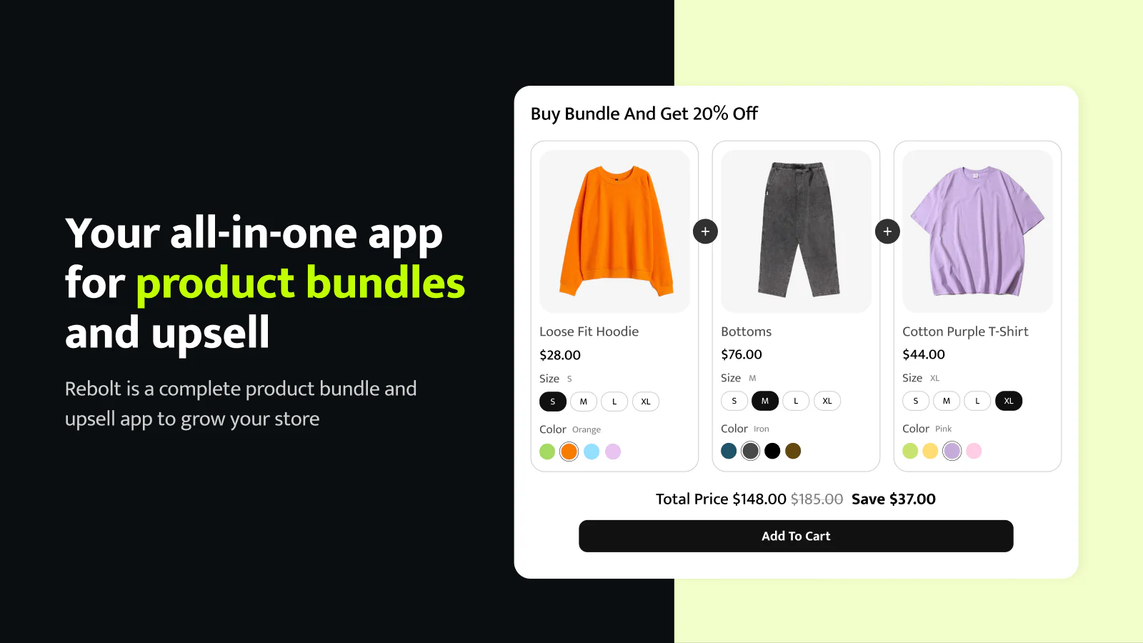 With Rebolot – Bundle Products, you can build your own bundle boxes (perhaps a mix of popular items with complementary, lower-selling items) or let customers bundle their own for a flat price.