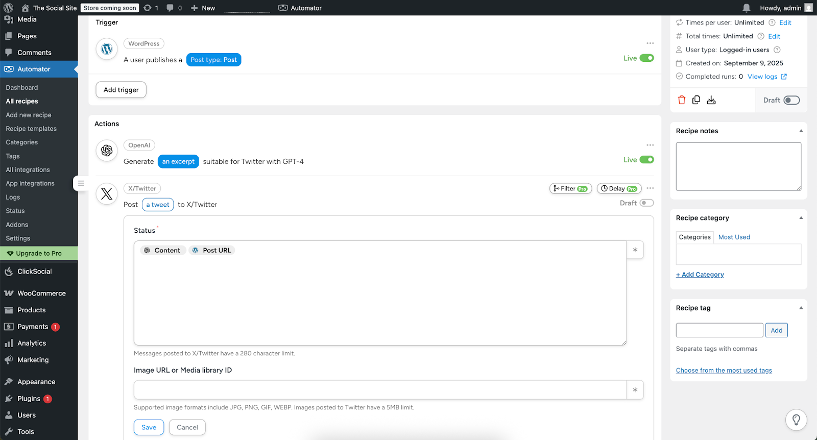 It takes a bit longer to set up Uncanny Automator than most other apps. With X (Twitter), for example, you can either use the built-in integration to post up to 5 times a day or create a custom Twitter integration using an API key to post 100 times a day. Uncanny Automator was also the only plug-in we tested that was slowerto complete publishing a new blog post. With its complexity, though, comes the flexibility to build the social media workflows you want — and more. Developers can also add custom integrations with webhooks or API keys to build out additional functionality. It’s the one plug-in most likely to keep you from needing to add more plug-ins later.