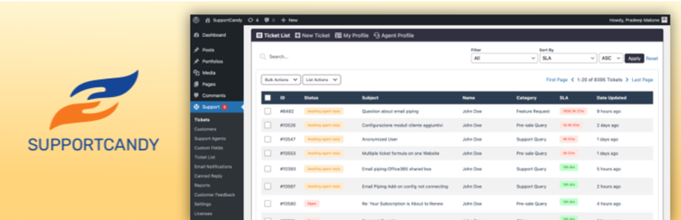 The SupportCandy WordPress support ticket plug-in is available for free and also has paid plans with additional features starting at $79 annually.
