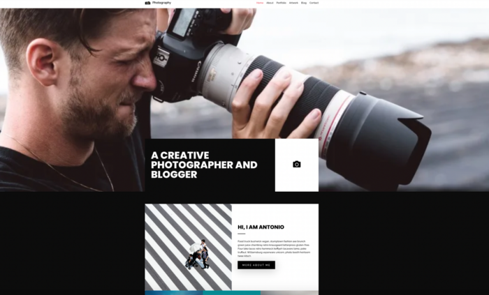 Some of Astra’s pre-built templates are specifically for photographers, like the one below.