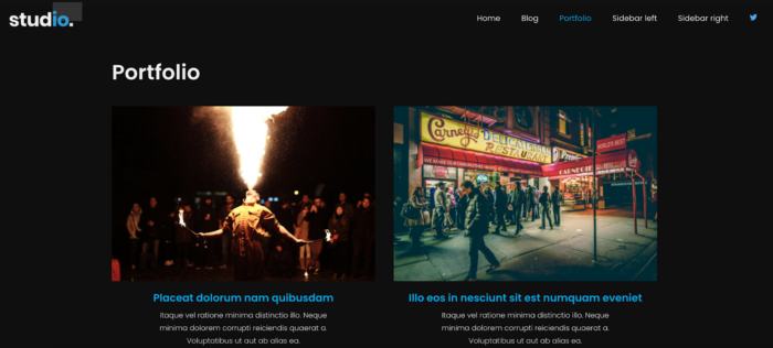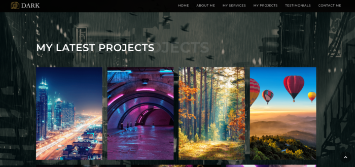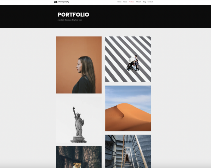 The portfolio functionality makes it easy to display beautiful photos against a dark background.