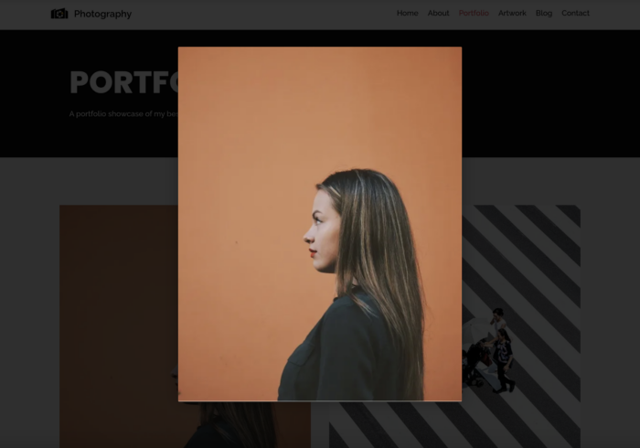 A customizable portfolio displays photos as a gallery — and it’s expandable, so visitors can also take a closer look.