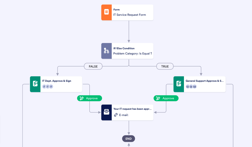 You can carefully develop the forms so they collect the essential information your IT team needs to begin the troubleshooting process, potentially reducing or eliminating back-and-forth conversations. This process could also make it easier for your IT team to connect tickets to the staff member who’s best suited to address the issue.