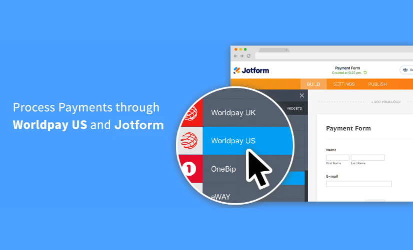 Worldpay US turns your form into a powerful tool for processing online credit card payments. Using Jotform’s new integration with Worldpay US, you can simultaneously collect payments while gathering important customer or client information. This comes in handy for registrations, selling products through your form, and collecting donations and fees.