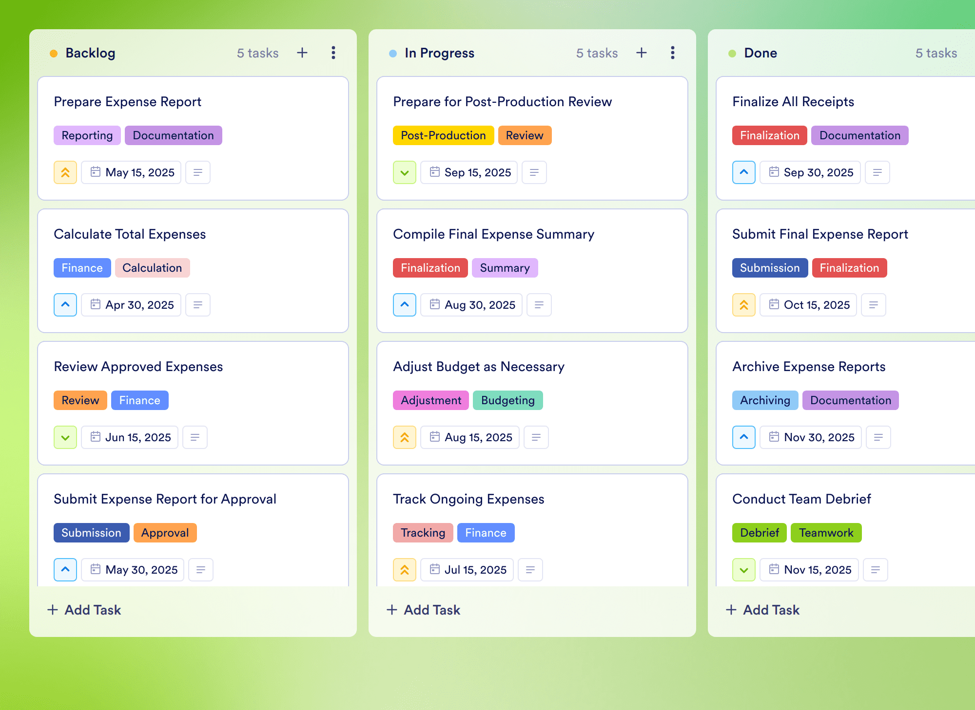 The Film Production Template is an essential board template specifically tailored for film production teams and project managers overseeing the financial aspects of filmmaking. This template allows users to efficiently manage and track all expenses related to film production, from collecting receipts to preparing detailed expense reports. Ideal for producers, budget managers, and finance teams, this customizable board streamlines the process of monitoring costs and ensures that all financial records are organized and accessible.