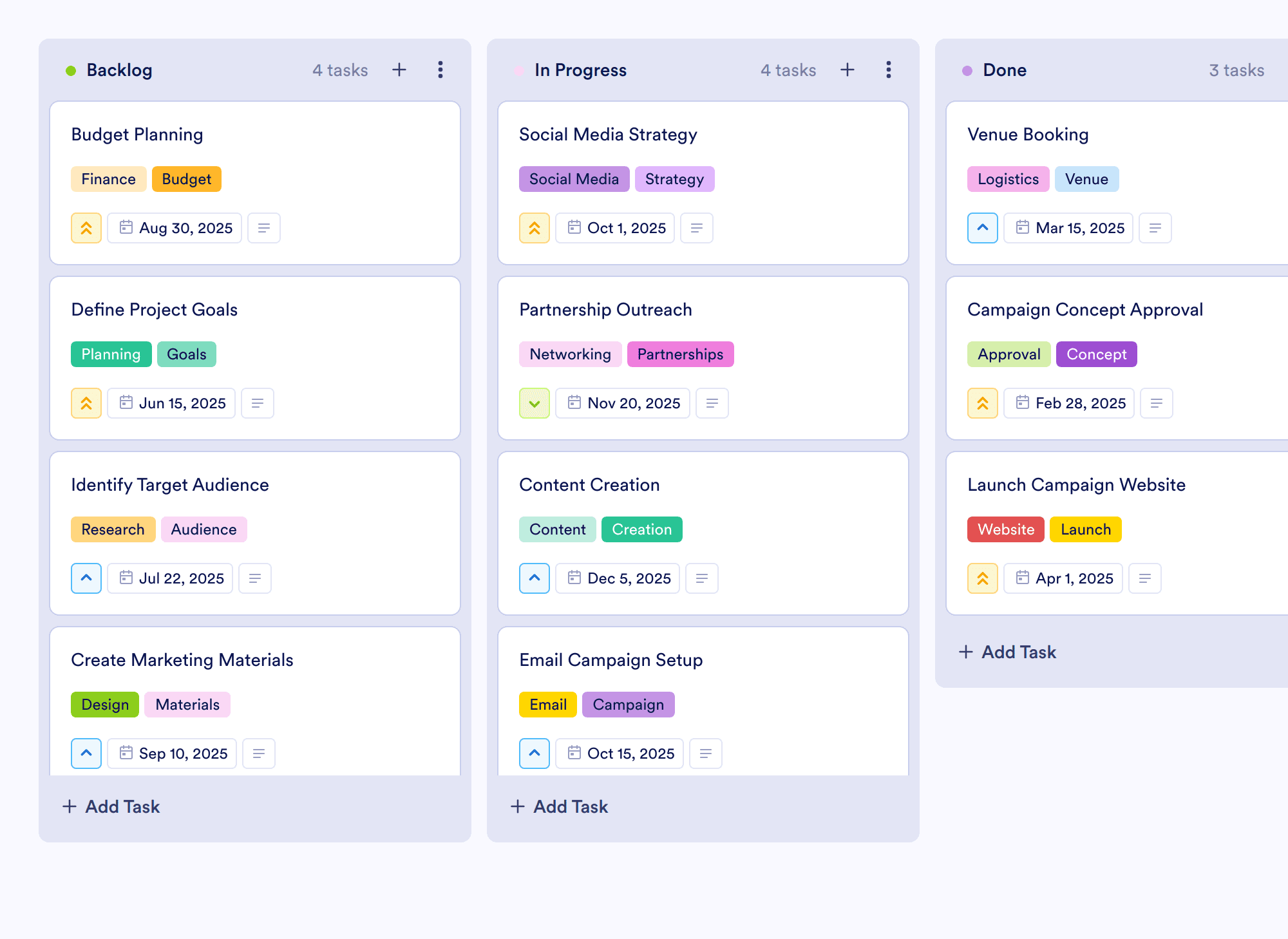 The Integrated Campaign Template is a must-have board template for any team embarking on synchronized marketing campaigns. Designed to streamline the management of campaign elements, from brainstorming and content creation to deployment and performance monitoring, this versatile board template is the ultimate solution. With an intuitive drag-and-drop interface, teams can effortlessly organize tasks, set priorities, assign responsibilities, and track deadlines, ensuring a seamless workflow process for successful integrated campaigns.