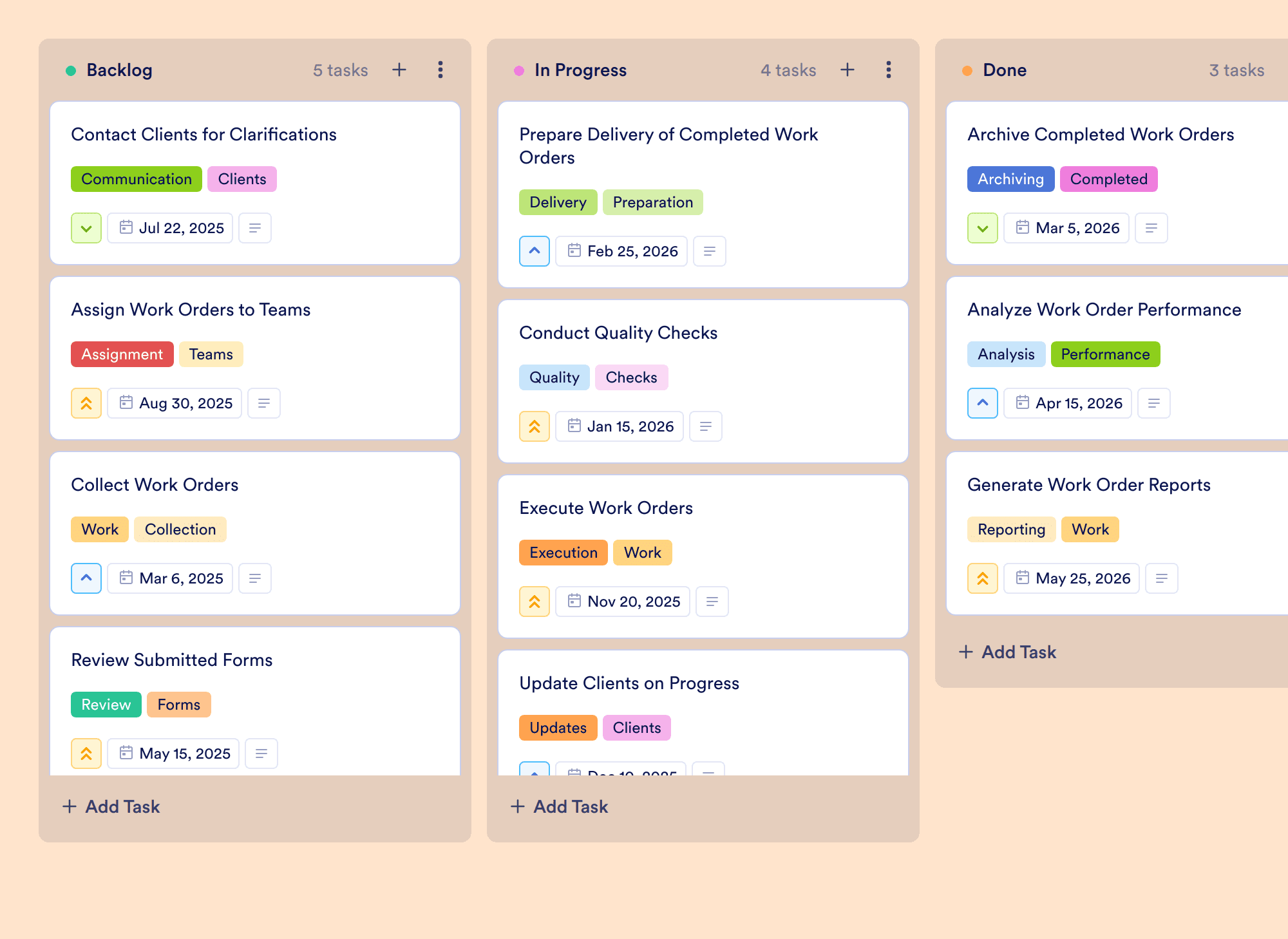 Jotform Boards enhances your online task management by enabling seamless collaboration among team members. With features like a drag-and-drop interface, task assignment, priority settings, and internal comments, teams can work together effortlessly. Transform form submissions into actionable tasks, monitor progress through a visual Kanban board, and customize your workflow to fit your unique business needs. This digital collaboration tool is perfect for optimizing job processes and ensuring that all tasks are completed on time.