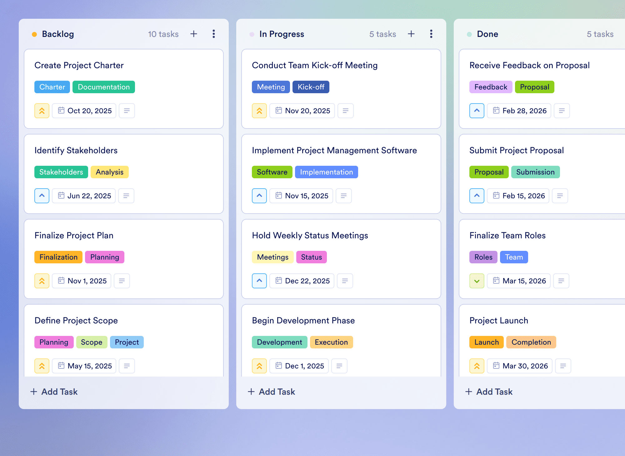 You can monitor progress by moving tasks across different stages on the Kanban board, such as "Backlog," "In Progress," and "Done." This visual representation makes it easy to see where each task stands.