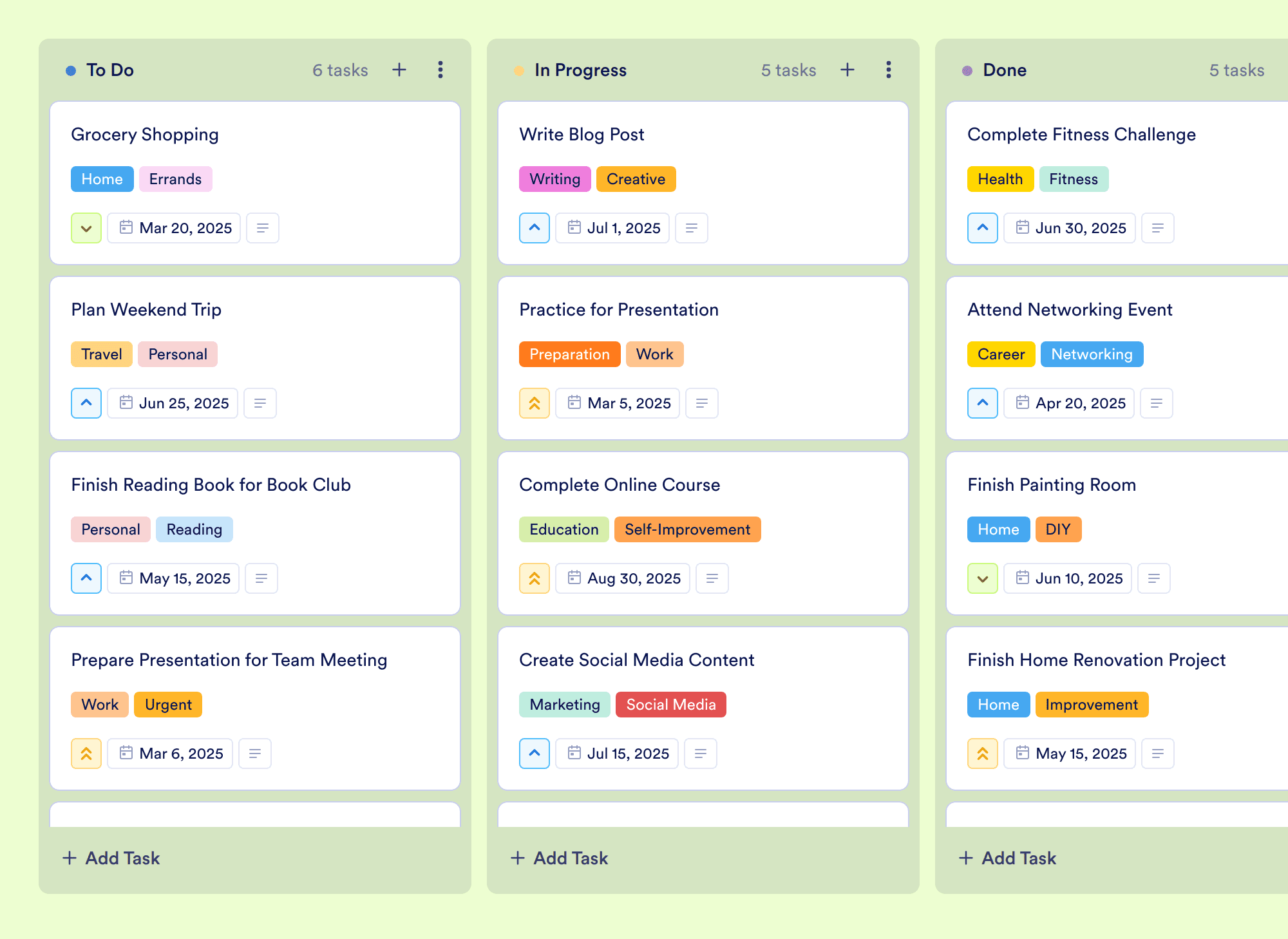 The Plan Your Day Template is an essential board template designed for individuals looking to effectively manage their daily tasks and responsibilities. Whether you are a freelancer juggling multiple projects, a busy professional balancing work and personal life, or someone simply aiming to enhance productivity, this customizable board allows you to prioritize tasks, set deadlines, and track progress seamlessly. With a drag-and-drop interface, you can easily move tasks between stages such as "To Do," "In Progress," and "Done," ensuring that your day is organized and productive.