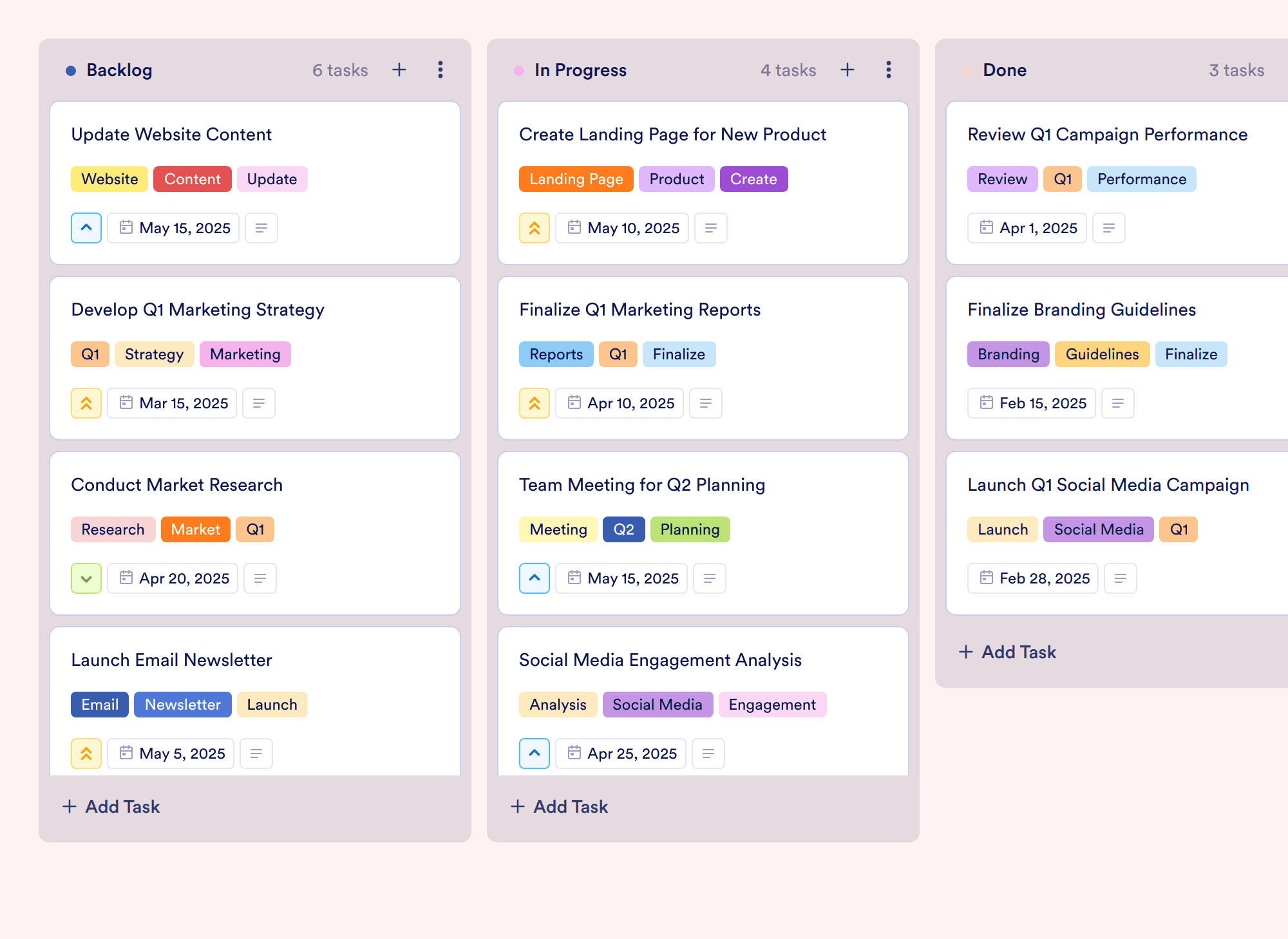 The Product Marketing Template is a tailored board template designed for marketing teams and professionals looking to effectively manage their product marketing strategies. Ideal for marketers, project managers, and product owners, this template helps streamline the planning and execution of various marketing initiatives. With tasks like developing a quarterly marketing strategy, designing campaigns, and conducting market research, users can ensure that all aspects of their product marketing are organized and prioritized efficiently.