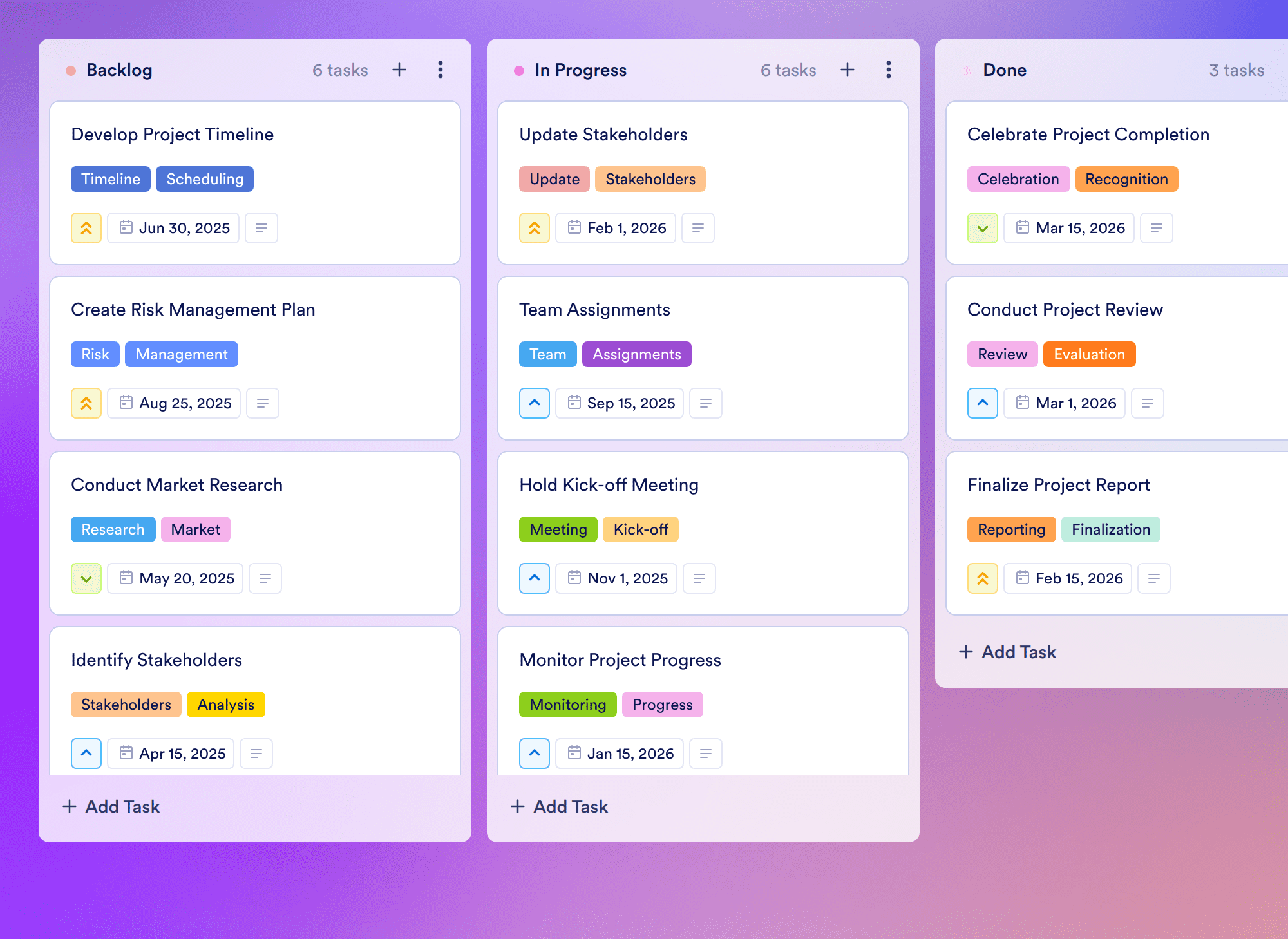 The Requirements Management Template is an essential board template designed for project managers and teams seeking to streamline their project planning and execution processes. This template helps users define project scopes, identify stakeholders, and develop comprehensive project plans, ensuring that all team members are aligned and informed throughout the project lifecycle. With features like priority settings and due dates, this customizable board allows users to efficiently track the progress of tasks, making it ideal for both collaborative teams and individual project owners.