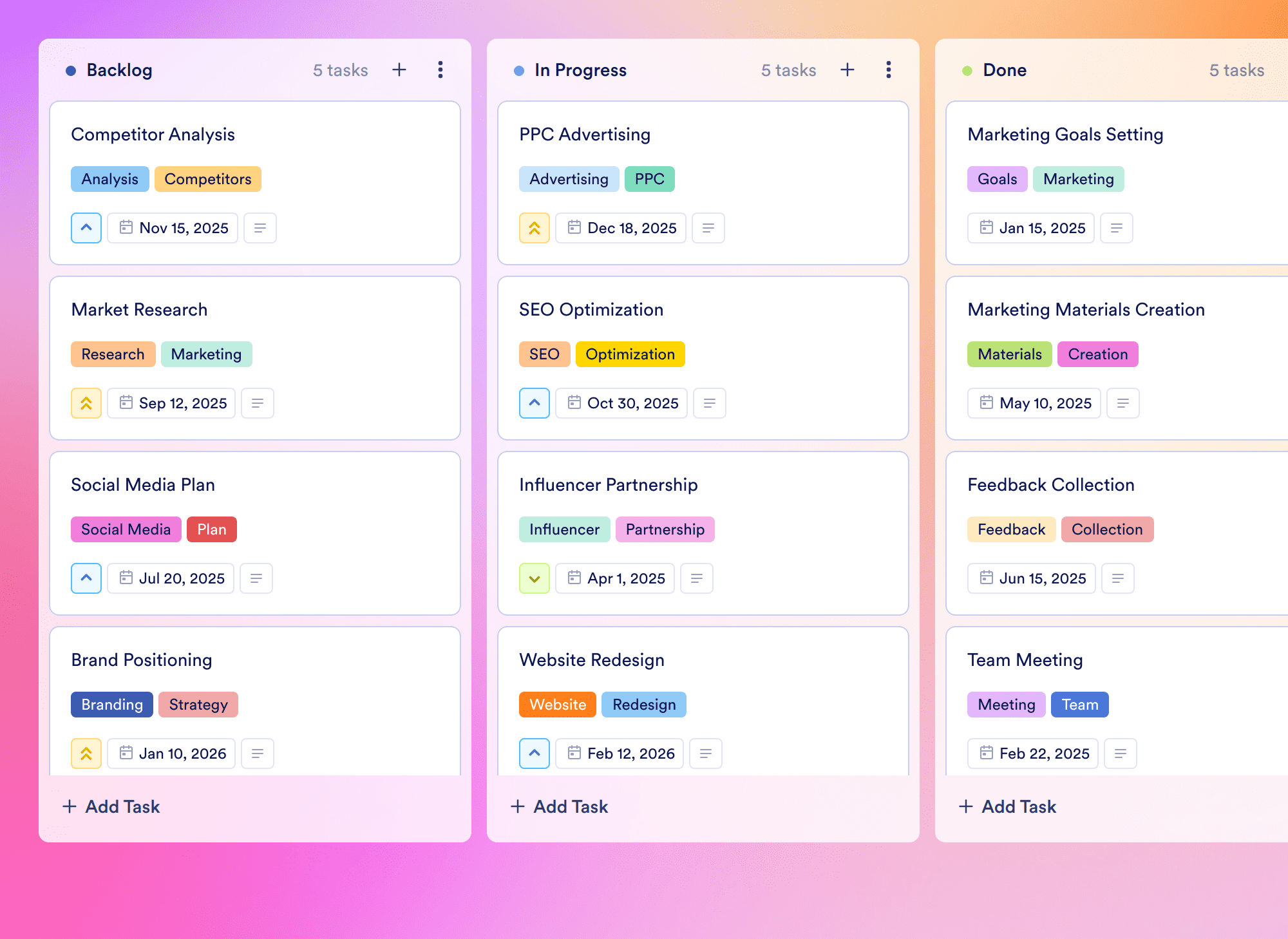 Jotform Boards is the ultimate solution for online task management, enabling users to connect forms to boards and transform submissions into actionable tasks effortlessly. With features like Kanban boards, task filtering, priority settings, and team collaboration tools, Jotform Boards enhances productivity and streamlines workflow automation for marketing professionals. Whether you're working on a solo project or collaborating with a team, this digital collaboration tool empowers you to stay organized, communicate effectively, and achieve your marketing goals efficiently. With the SaaS Marketing Plan Template and Jotform Boards, marketing success is just a few clicks away.