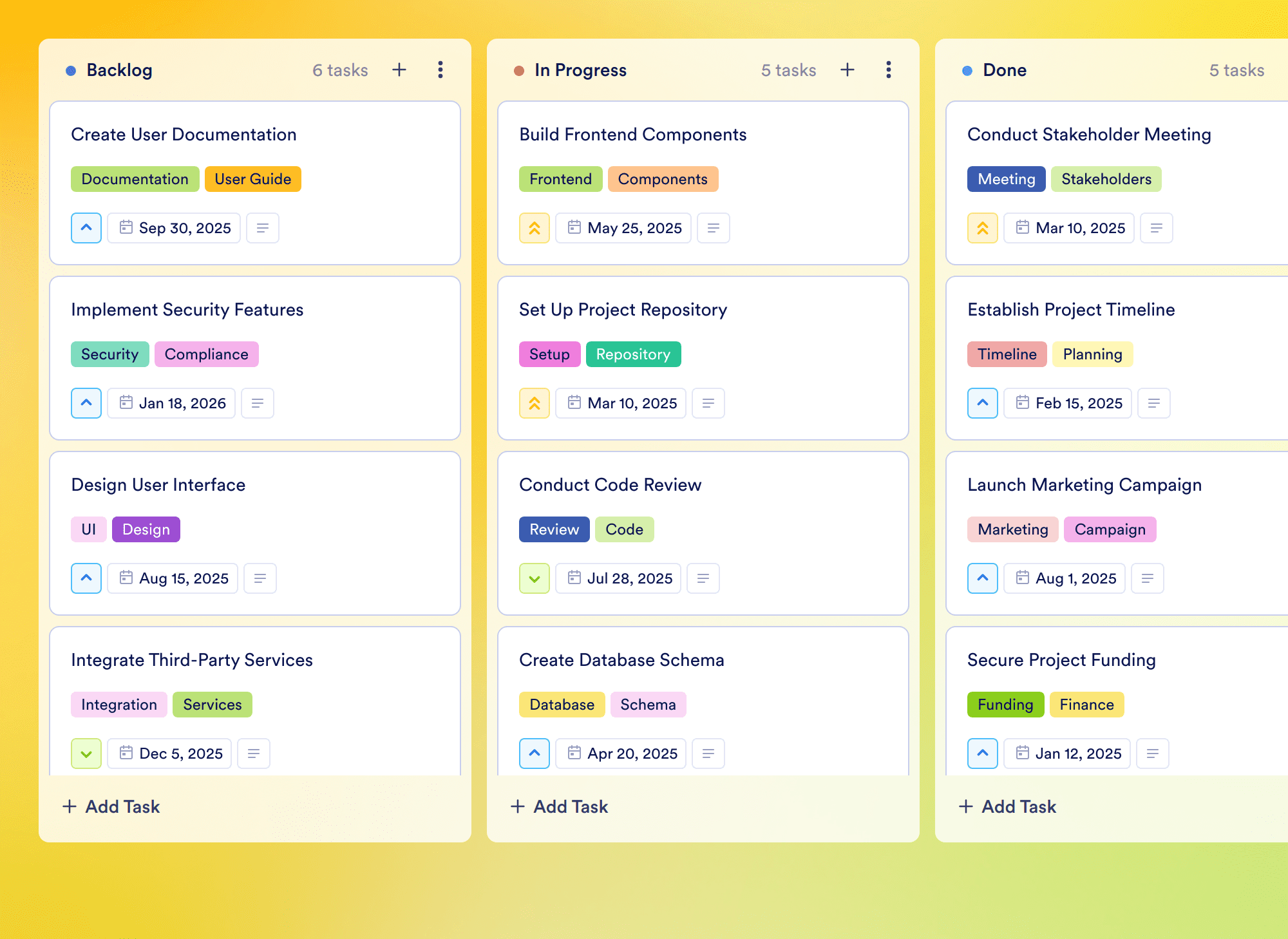 The Timeline Outline Template is a strategic board template designed for teams and individuals managing complex projects with clear timelines and milestones. Perfect for project managers, product teams, or freelancers, this template helps you organize tasks such as user interface design, backend development, and user testing, ensuring that every phase of your project is tracked efficiently. With a drag-and-drop interface, you can easily move tasks between stages like "Backlog," "In Progress," and "Done," allowing for seamless workflow management.