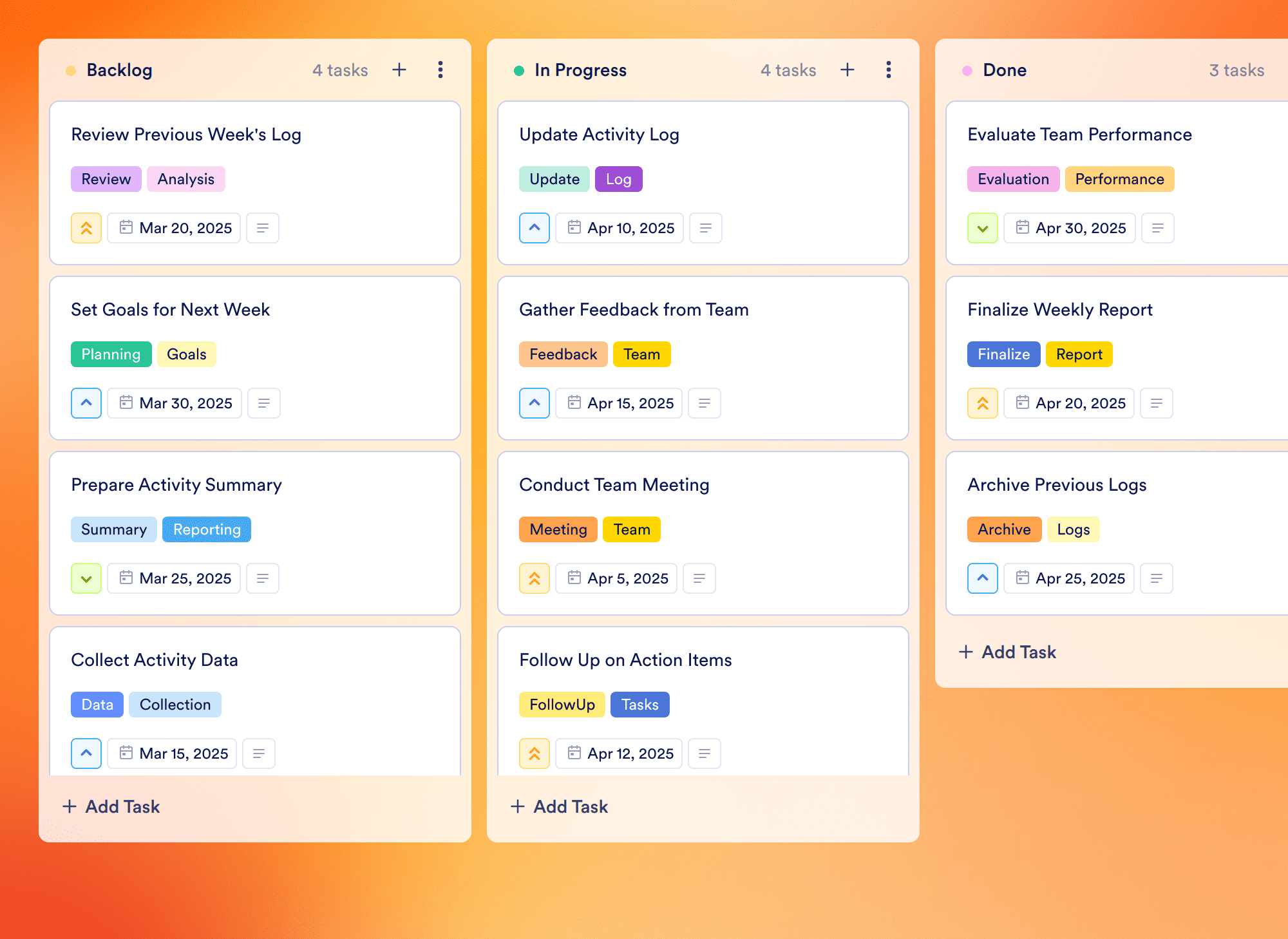 The Work Week Calendar Template is a highly effective board template designed for teams and individuals who need to organize their weekly activities and tasks efficiently. This template is ideal for professionals in various fields, including project managers, team leaders, and freelancers, who want to keep track of their weekly goals, meetings, and deliverables. By utilizing this customizable board, users can easily collect activity data, set priorities, and ensure that all tasks are completed on time, promoting accountability and productivity.