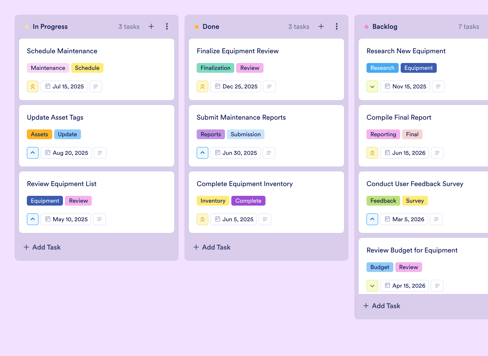 The Year Timeline Template is an essential board template designed for teams and professionals managing long-term projects and strategic planning. This template is ideal for project managers, operations teams, and individuals who need to visualize timelines for tasks such as equipment reviews, maintenance schedules, and inventory management. By organizing tasks into a clear timeline format, users can easily track progress, set priorities, and ensure that deadlines are met, enhancing overall productivity.