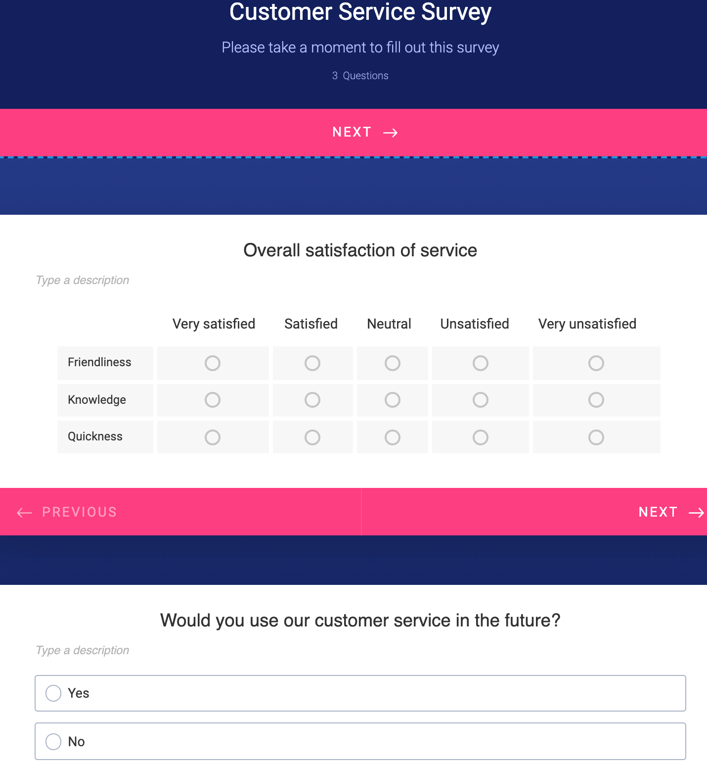 Jotform is an easy-to-use form builder that enables you to survey customers quickly and in an organized manner. Instead of creating a survey from scratch, choose from dozens of pre-built customer satisfaction surveys to save time.