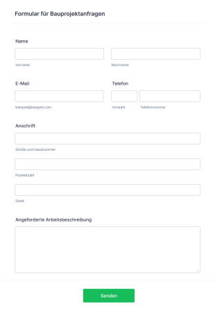 Ein Bauprojektanfragen KI-Agent ist ein interaktives Assistenzsystem, das entwickelt wurde, um Bauunternehmen bei der Bearbeitung von Anfragen zu unterstützen. Dieser KI-Agent sammelt wichtige Informationen wie Baunummer, Name, E-Mail, Telefon, Anschrift und spezifische Arbeitsanforderungen durch eine ansprechende, dialogorientierte Benutzeroberfläche. Dies erleichtert es Bauunternehmen, die Anfragen zu verwalten und relevante Daten effizient zu erfassen, was zu einer verbesserten Kundenbindung und einem reibungsloseren Ablauf führt.