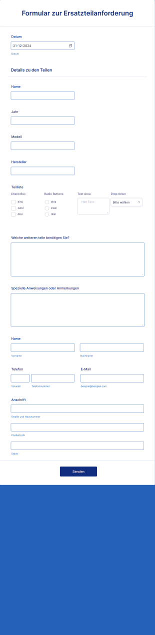 Ein Ersatzteilanforderung KI-Agent ist ein interaktiver Assistent, der entwickelt wurde, um den Prozess der Ersatzteilanforderung zu optimieren. Dieser KI-Agent erfasst wichtige Informationen wie Bestellnummer, Name, Modell und spezielle Anweisungen über eine benutzerfreundliche, dialogorientierte Schnittstelle. Dies erleichtert es Unternehmen, die Anforderungen ihrer Kunden zu erfüllen und gleichzeitig die Effizienz zu steigern.