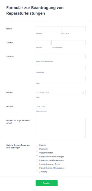 Dieser AI Agent kann in verschiedenen Szenarien eingesetzt werden, um Reparaturanfragen zu sammeln und zu verwalten. Einige der Anwendungsfälle sind:
