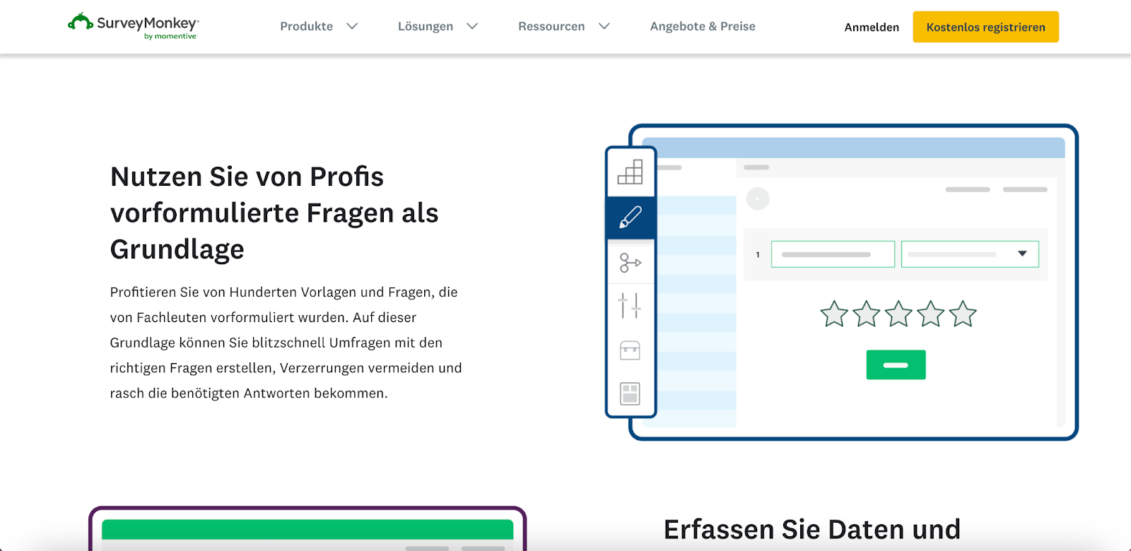 Qualtrics ist eine führende Software für das Experience-Management, die Unternehmen hilft, jede Interaktion mit Kunden und Mitarbeitern besser zu verstehen. Qualtrics ist ideal für Unternehmen mit komplexen Umfrageanforderungen und bietet mehrere verschiedene Umfrageprodukte an. Es ist einfach zu bedienen und verfügt über ein intuitives Drag & Drop Umfragetool.