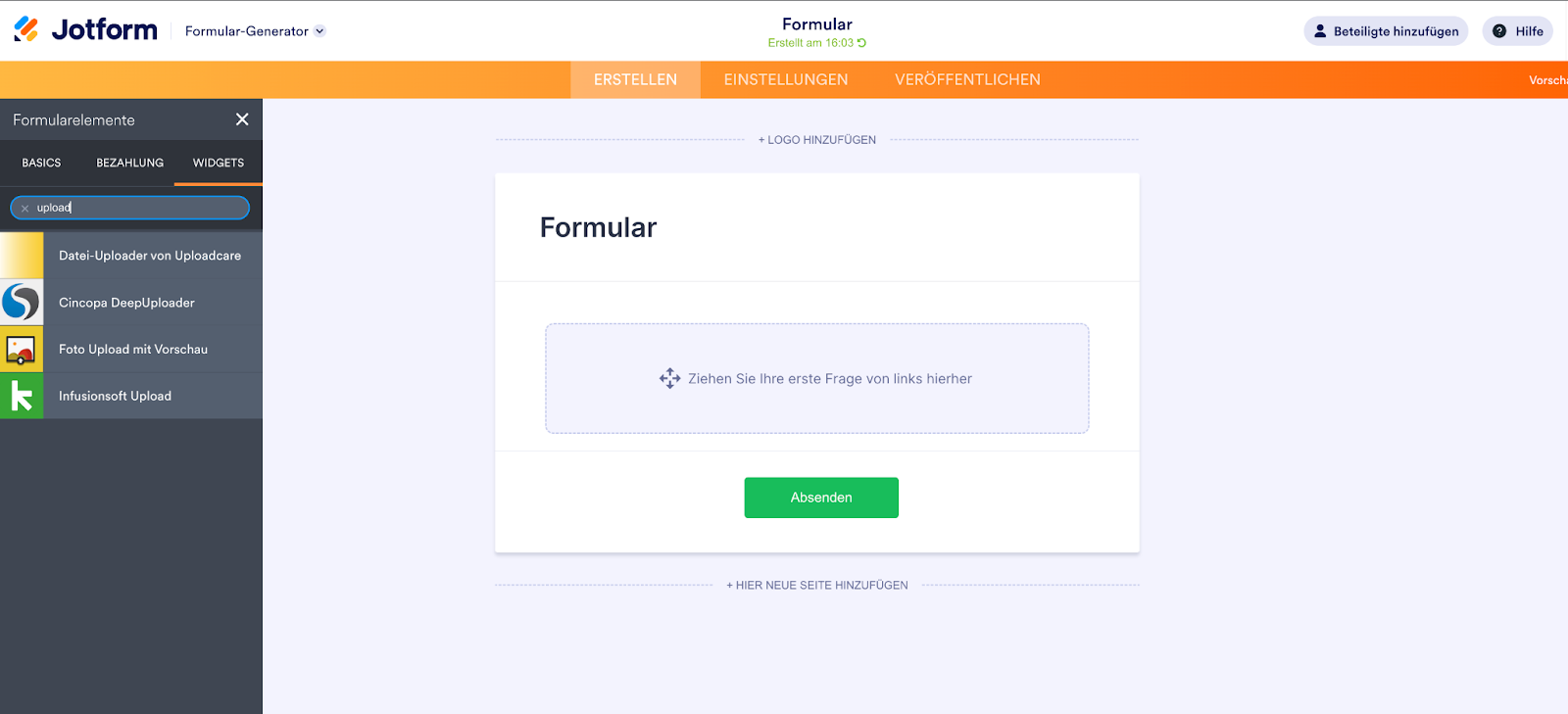 Wenn Sie eine Datei mit einer Größe von bis zu 1 GB empfangen möchten, sollten Sie ein mit Jotform erstelltes Online-Formular verwenden. Wählen Sie einfach eine der über 10.000 nützlichen Formularvorlagen aus und fügen Sie Ihrem Formular ein Datei-Upload-Feld oder ein Widget hinzu. So können Sie Ihre Dateien und alle anderen Informationen sammeln, die Sie benötigen.