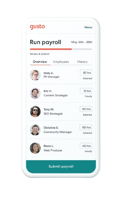 Die All-in-One-Plattform von Gusto vereinfacht die komplexe Verwaltung von Sozialleistungen, Personalwesen und Gehaltsabrechnung und gewährleistet Genauigkeit und Effizienz. Das benutzerfreundliche Design macht es Managern leicht, HR-Aufgaben ohne eine steile Lernkurve zu bewältigen. Durch die Automatisierung dieser Prozesse können Manager mehr Zeit für die Führung ihrer Teams und das Wachstum ihres Unternehmens aufwenden.