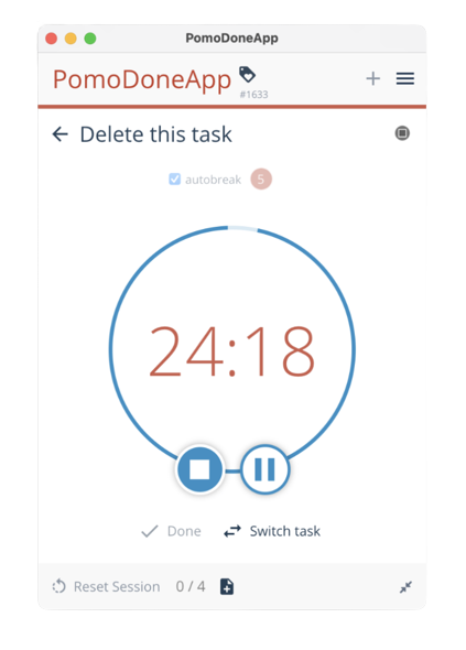 Die PomoDoneApp ist für jedes Betriebssystem verfügbar. Sie enthält auch Chrome-Erweiterungen für Mac und Windows, mit denen Sie Aufgaben direkt über Ihre Symbolleiste starten, stoppen und pausieren können.