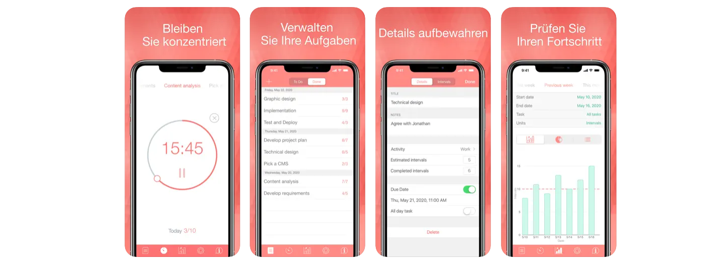 Pomodoro-spezifische Applikationen können Tracking erleichtern und geben Ihnen die Möglichkeit, Ihre Fortschritte über einen längeren Zeitraum zu verfolgen. Hier sind 16 der besten Pomodoro-Apps, die Ihnen bei der Zeiterfassung und der Verbesserung Ihrer Produktivität helfen: