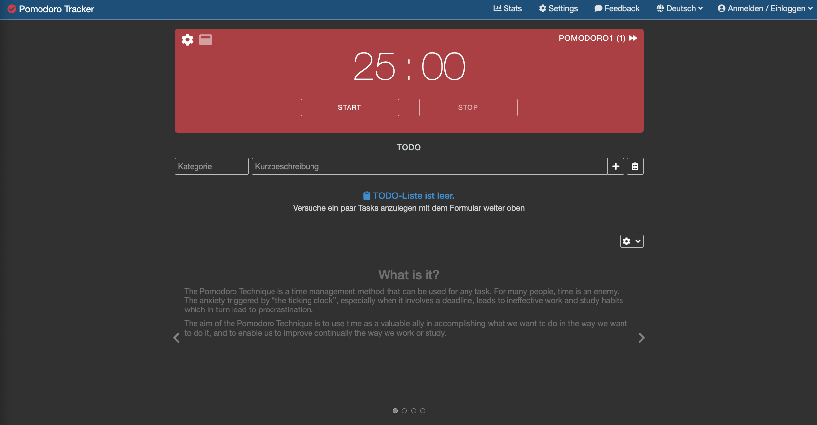 Das Besondere an dieser Methode ist ihre Einfachheit. Alles, was Sie wirklich brauchen, ist ein einfacher Timer. Die Verwendung einer Pomodoro-spezifischen Applikation kann es jedoch einfacher machen, Pausen und Fortschritte im Auge zu behalten. Wir werden gleich darauf zurückkommen.