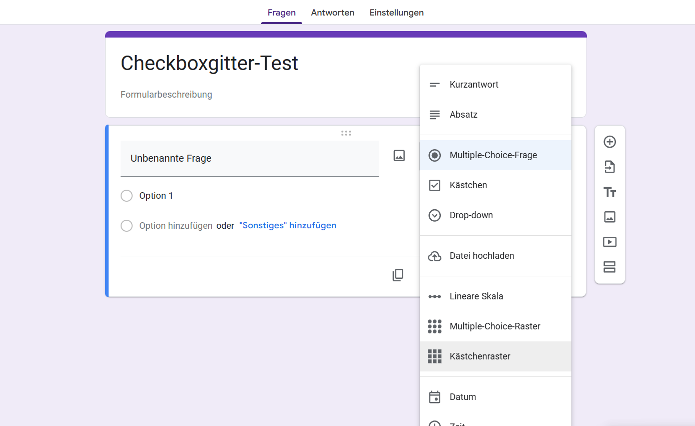 Wie man ein Checkboxgitter in Google Formulare erstellt