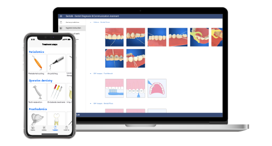 Dentalk ist eine App zur zahnmedizinischen Diagnose und Patientenaufklärung. Sie enthält visuelle Kommunikationsmittel, die Zahnärzten helfen, Patienten verschiedene Zahnkrankheiten, Behandlungsverfahren und Hygienemethoden zu erklären.