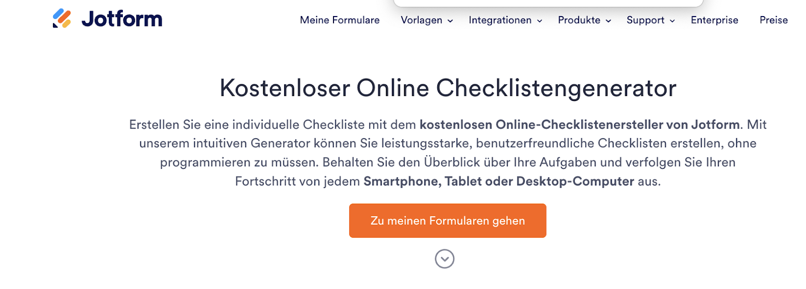 - Gehen Sie zur Jotform Checklistengenerator Seite.