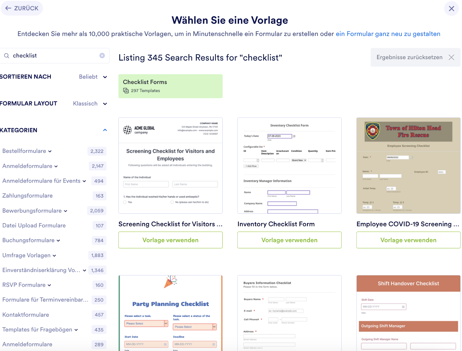 - Wählen Sie die Vorlage aus unseren mehr als 400 Checklisten-Vorlagen, die Ihre Bedürfnisse am besten abdeckt.