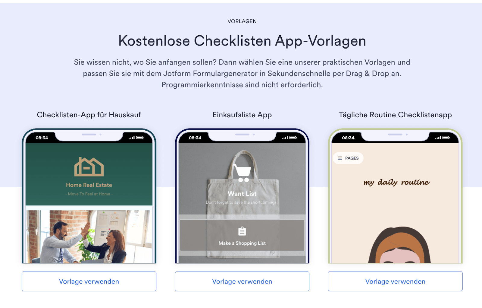Wenn Sie eine Checklisten-App für leichteren Zugriff erstellen möchten, bietet Jotform auch hierfür einige Vorlagen.