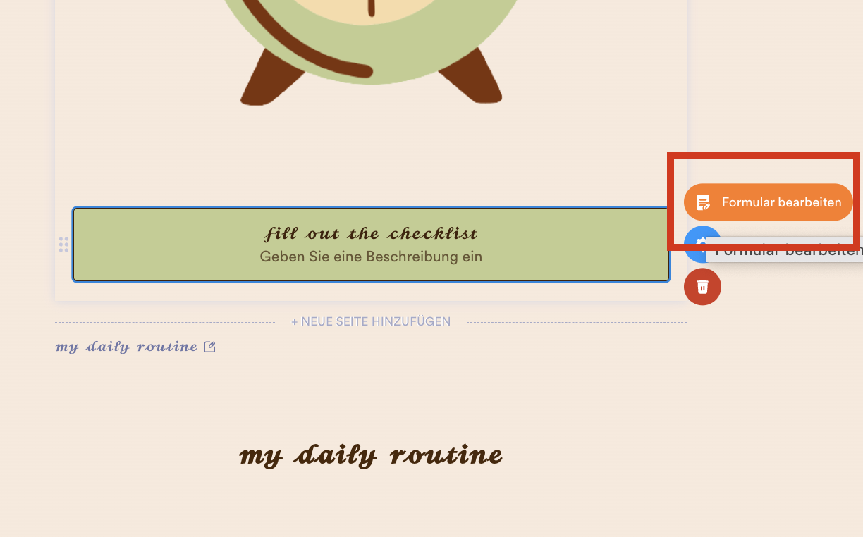 - Finden Sie das Formularelement in Ihrer Vorlage. In diesem Fall steht hier Fill out the checklist.