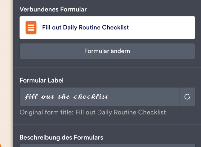- Im Menü Eigenschaften klicken Sie auf Formular ändern. Wählen Sie das passende Checklistenformular für Ihre App.