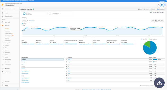 - Hauptfunktionen: Google Analytics ist dafür bekannt, einfach und intuitiv zu sein. Erhalten Sie detaillierte Daten über den Traffic auf Ihrer Website und Einblicke, wie sich Ihre Nutzer verhalten und mit Ihren Inhalten interagieren. Legen Sie Ihre eigenen Ziele fest und verfolgen Sie den Fortschritt – alles über das gleiche Dashboard.