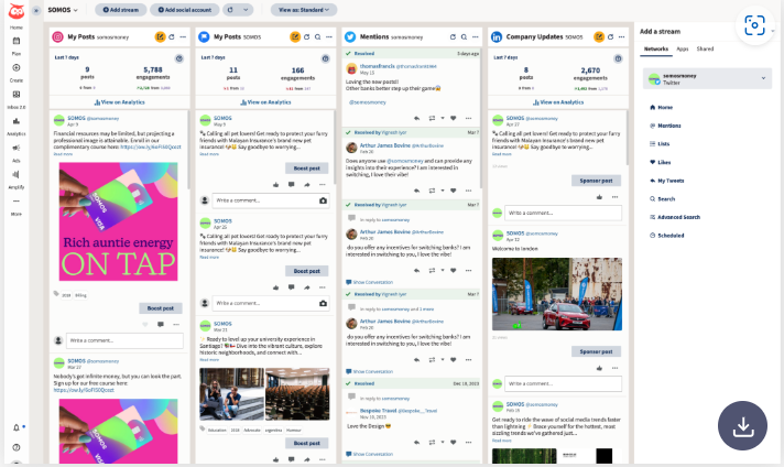 - Hauptfunktionen: Hootsuite ist bekannt für sein breites Spektrum an Funktionen und Features, insbesondere wenn es um die Planung und Überwachung Ihrer Social Media-Inhalte geht. Verwalten Sie mehrere Konten und Feeds über ein einziges Dashboard und passen Sie die Berichte an die Bedürfnisse Ihres Unternehmens an und exportieren Sie sie.