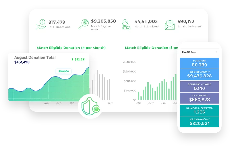 Natalie Maximets, zertifizierte Life Transformation Trainerin bei Online Divorce, fügt hinzu, dass die Funktionen von 360MatchPro – darunter die Überprüfung von E-Mail-Domänen zur Identifizierung von Unternehmen mit passenden Geschenkprogrammen, die Verwaltung passender Geschenke, Filter, die die besten passenden Vertriebschancen anzeigen, Ein-Klick-Benachrichtigungen über Spender, die einen Antrag auf passende Geschenke senden, und vieles mehr – Ihrer Organisation helfen, die Wirkung von Spenden zu maximieren.