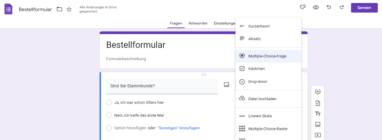 Erstellen einer Bestellung in Google Forms