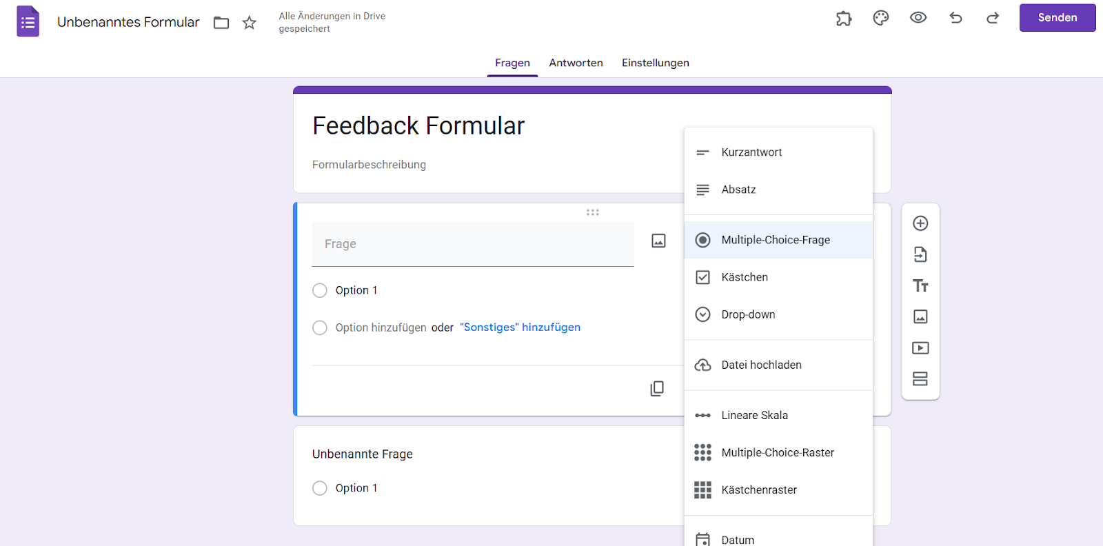 Wie Sie ein Feedback-Formular in Google Formulare erstellen