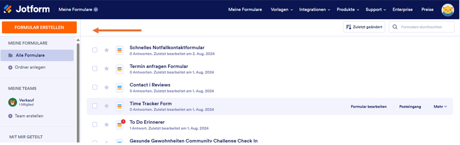- Öffnen Sie ein bestehendes Formular oder erstellen Sie ein neues Formular auf der Startseite.