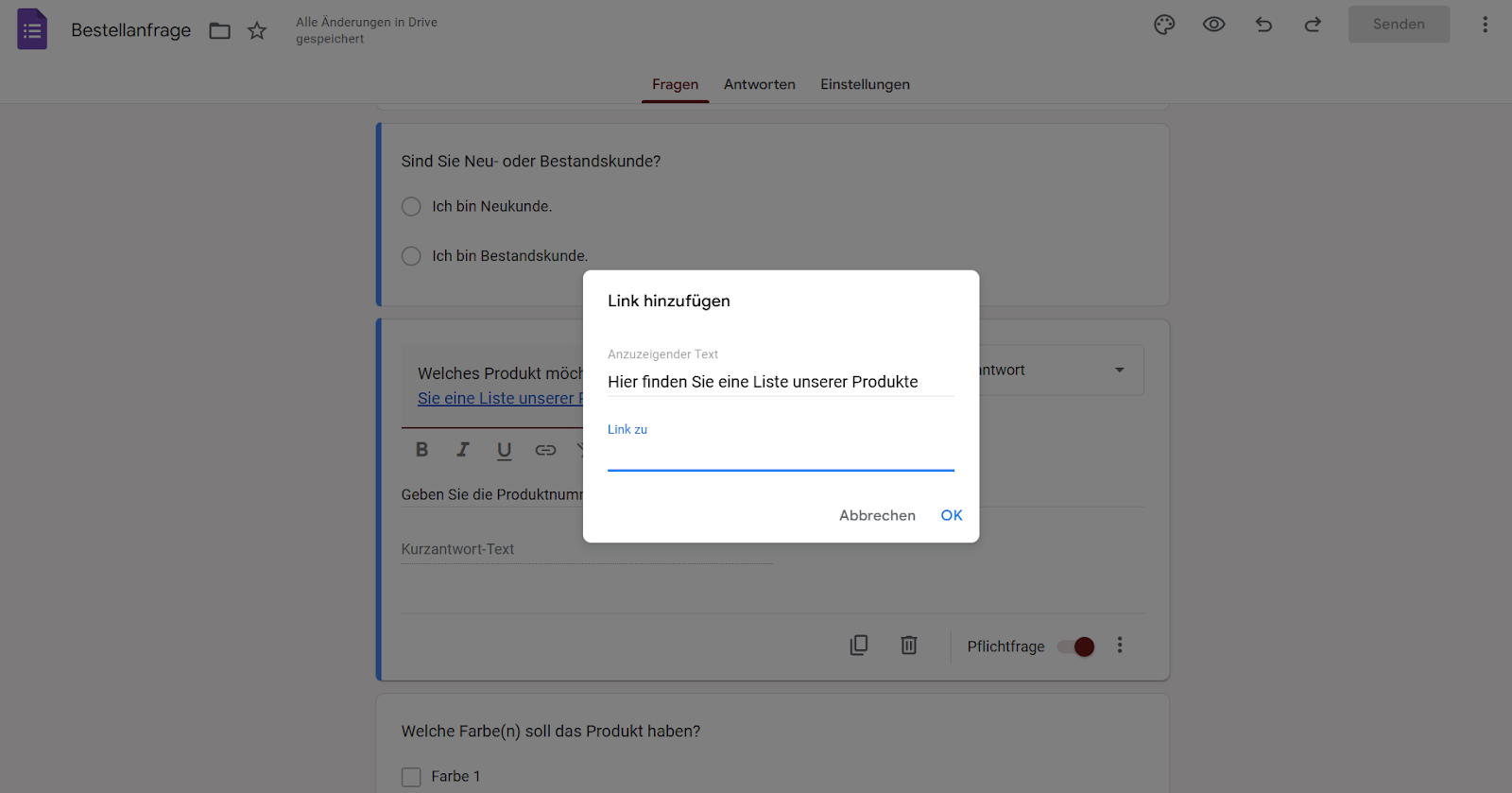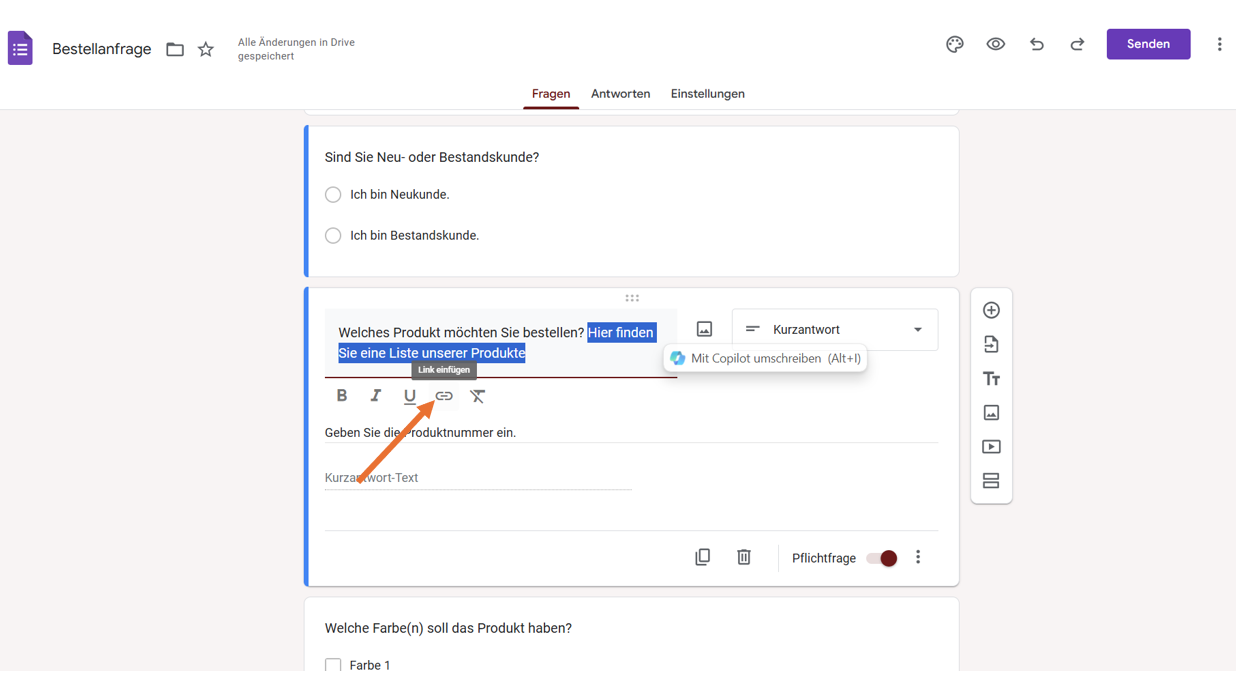 Hier finden Sie eine Zusammenfassung, wo und wie Sie einen Link in Google Formulare einfügen können.