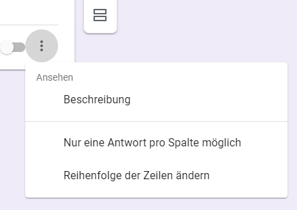Mit dem Mülleimer neben dem Symbol “Duplizieren” können Sie Ihr Raster löschen, falls Sie es doch nicht mehr benötigen. Wenn Sie die Schaltfläche Jede Zeile muss eine Antwort enthalten nach rechts schieben, können die Befragten das Formular nicht abschicken, ohne jede Frage im Raster zu beantworten.