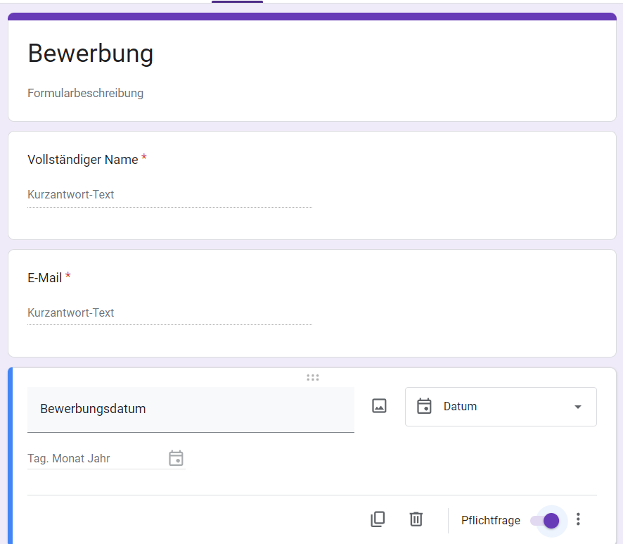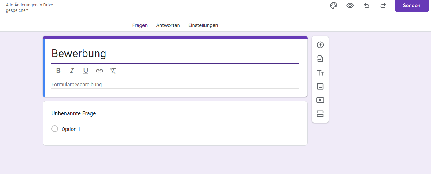 - Geben Sie Ihrem Formular einen passenden Titel, z.B. “Bewerbung”, und fügen Sie, falls gewünscht, ein Beschreibungsfeld hinzu.