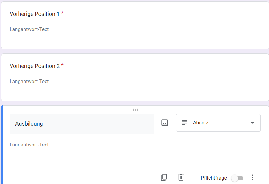 - Sie standardisieren die Antworten auf Bewerbungen. Durch die Verwendung von Google Formulare wird sichergestellt, dass jede Bewerbung das gleiche Format hat, was die Beurteilung der Bewerber erleichtert.